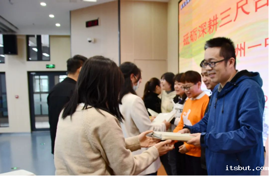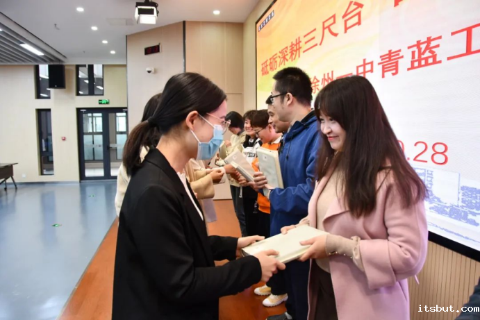 指导教师与青年教师互赠礼物,一本笔记表达敬仰,一册书籍寄予厚望。弦歌不辍,薪火相传青蓝相协,共谱华章