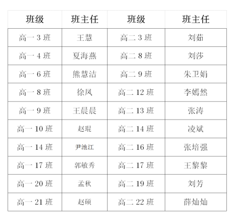 高一3班韩俞萱、高一12班李昱苏、高一14班董泽宇、高一16班马奕林、高一17班孔森熙、高二4班胡曦文、高二5班张兰琪、高二15班刘兆宇、高二16班张弛、高二17班史经权