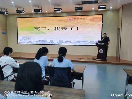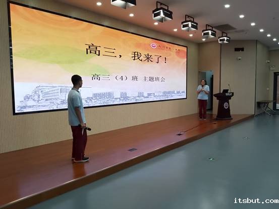 2023年9月18日下午第8节课在二楼C区多功能厅,高三(4)班召开主题班会“高三,我来了”,高三年级处领导、部分班主任、兄弟班级代表及全体实验班学生观摩。