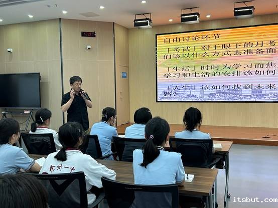 他们首先聚焦问题--“谁的青春不迷茫”,从同学们的日记本上的话语引入,引起现场的极大共鸣。新进入高三同学的三种类型:“周末恐惧型”、“现实回避型”、“终日忍受型”,字字真切,句句动情,击中同学们的内心,现场气氛活跃,会议也随之进入热烈的讨论环节。
