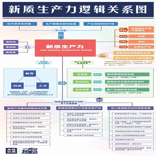 “新质生产力”是2023年9月习近平总书记在黑龙江考察调研期间首次提到的词汇。新质生产力是指通过技术革命性突破、生产要素创新性配置、产业深度转型升级而催生的当代先进生产力。它以劳动者、劳动资料、劳动对象及其优化组合的跃升为基本内涵,以全要素生产率大幅提升为核心标志。特点是创新,关键在质优,本质是先进生产力。