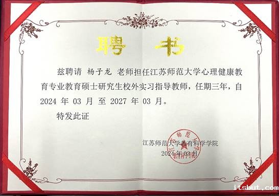 杨子龙老师受聘担任江苏师范大学教育科学学院心理健康教育专业教育硕士研究生校外实习指导教师。