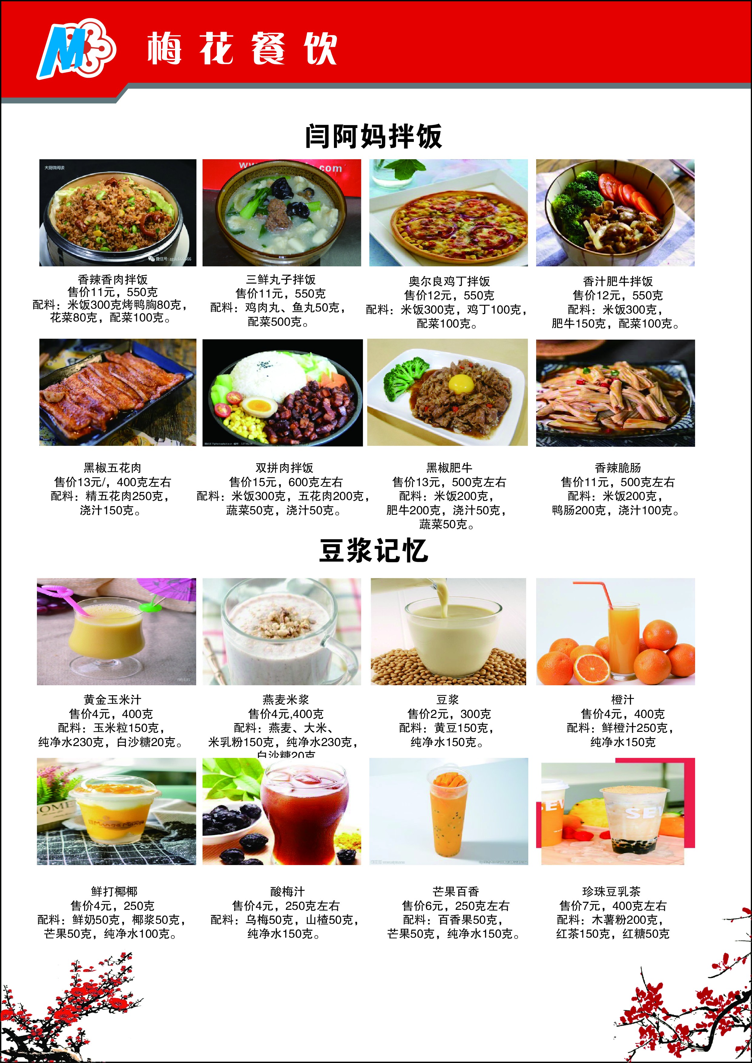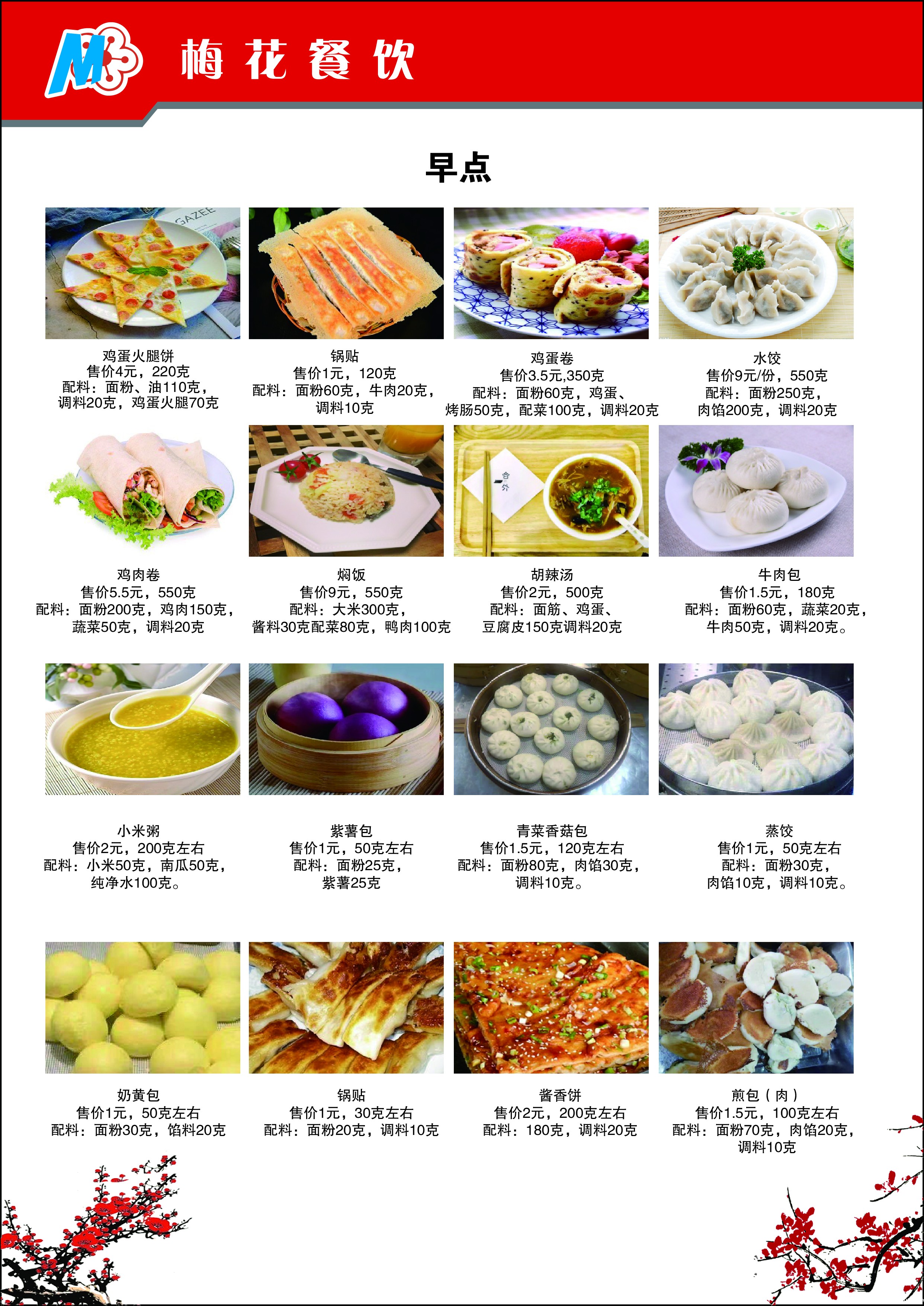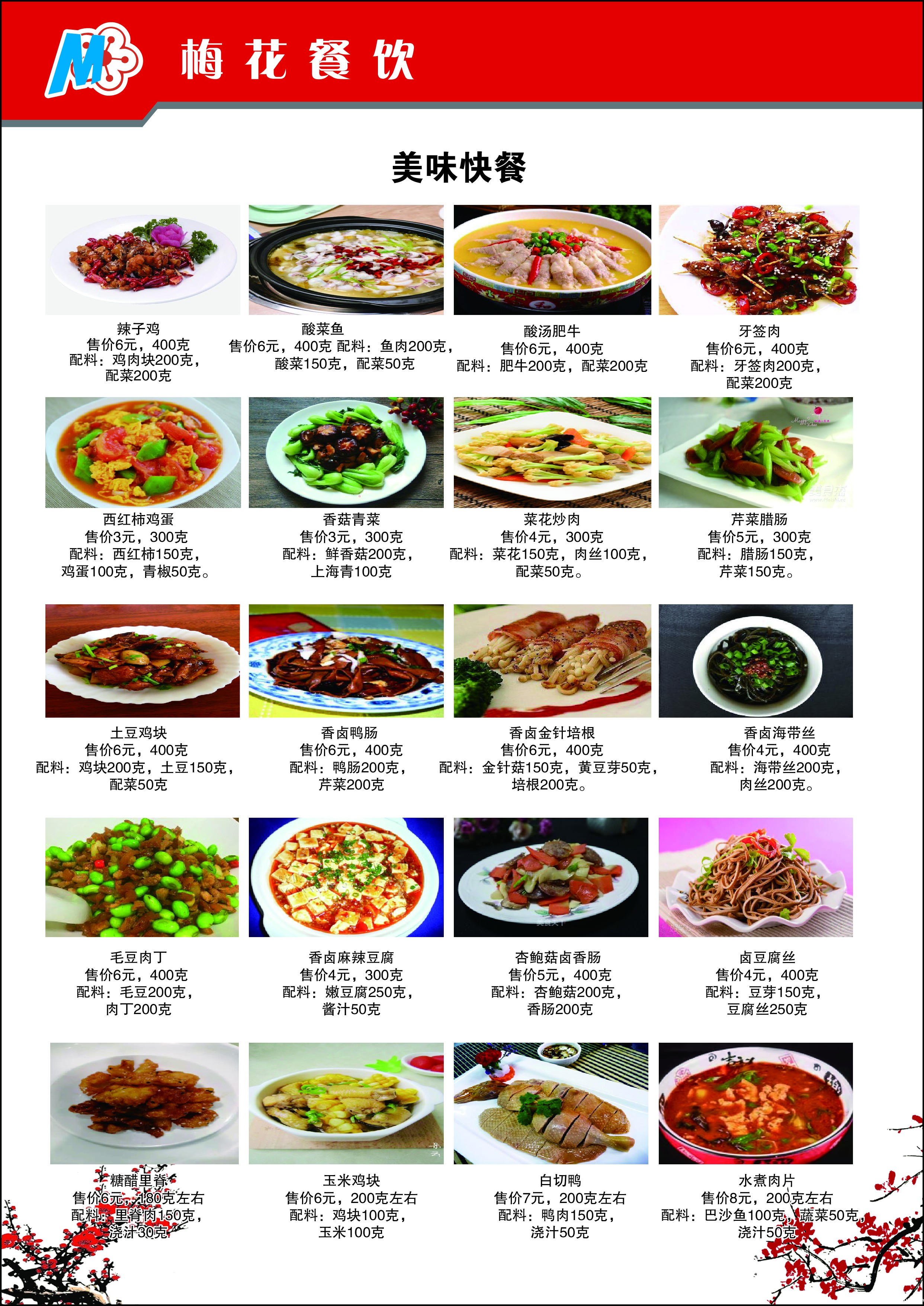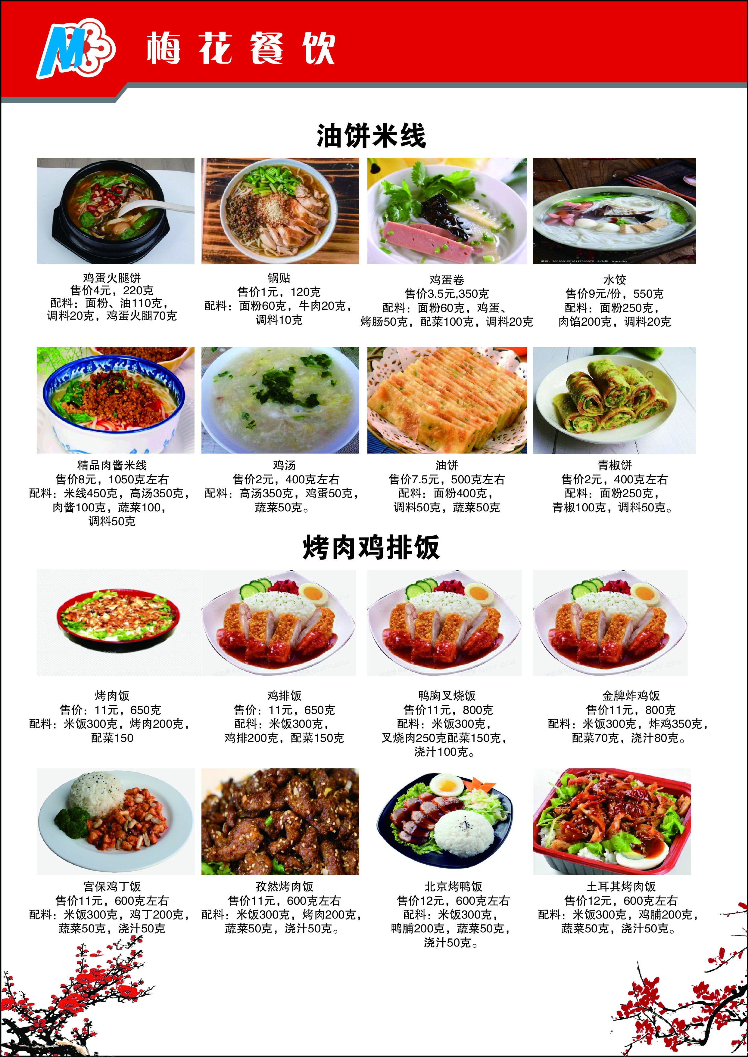 学生餐厅②(梅花餐厅)食品量化公示