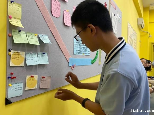 ▲学生自主讨论,达成共识的班风、班训、奋斗目标