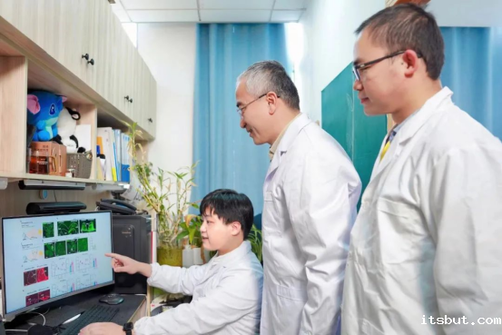 从左至右分别为:沈嘉伟(共同一作)、薛天教授、孟建军(共同一作)