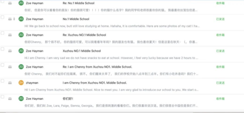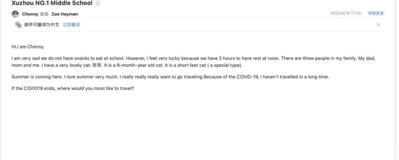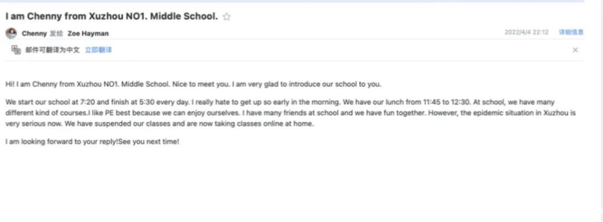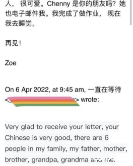 双方学生在邮件往来中潜移默化地提升了自己的语言能力,并且产生了进一步的了解,在未来的学习和生活中他们会彼此陪伴,一起进步。