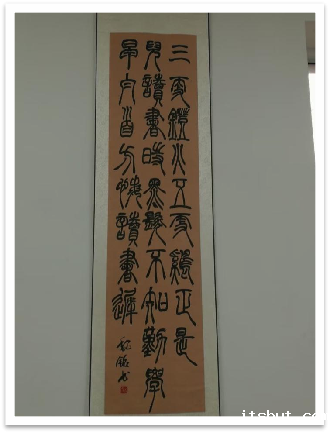这张照片是我们教室的一副字画,你们能猜出来这是中国古代的哪首诗和哪种字体吗?这就是古代秦朝统一后,经过丞相李斯整理的一种通行书体。这张字画上的古诗就是唐代诗人颜真卿所写的《劝学》:三更灯火五更鸡,正是男儿读书时。黑发不知勤学早,白首方悔读书迟。